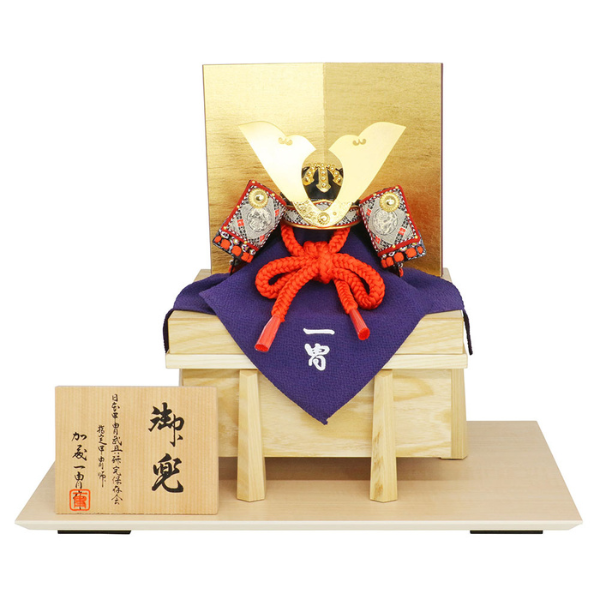Đây là một chiếc mũ giáp được thiết kế cổ điển với dây đỏ và sừng rộng, mang sức mạnh và khí thế của mũ thật, do nghệ nhân chế tạo giáp Kato Ichisuke tự tay hoàn thiện.